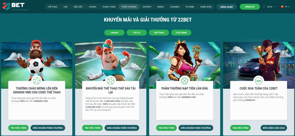 🎁Tôi muốn nhận thông tin về các chương trình khuyến mãi của 22BET?